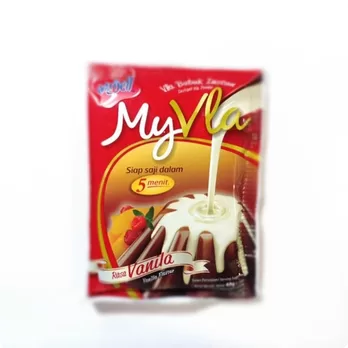 MyVla adalah vla bubuk instan tanpa dimasak cukup diseduh dengan 200 ml air panas dispenser minimal 70C, siap saji dalam 5 menit sebagai pelengkap puding. Praktis dan nikmat.