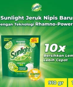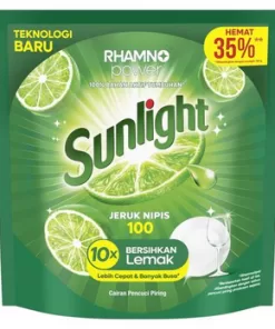 Sunlight Sabun Jeruk Nipis 100 BARU, mampu menghilangkan lemak dengan kekuatan 100 jeruk nipis di tiap kemasannya, secara aktif mengangkat dan menghilangkan lemak membandel, dan juga membersihkan dengan cepat berkat teknologi baru Cepat Bilas! Selain Sabun Cuci Piring Refill,