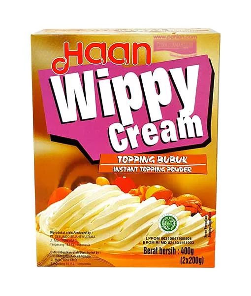 Bubuk pembuat krim yang sangat praktis (cukup tambah air es lalau kocok sampai mengembang). Wippy cream ini bertekstur lembut. Dapat digunakan untuk isian roti dan macam-macam kue serta mendekorasi kue (seperti black forest), waffle, topping untuk minuman dan produk pencuci mulut.