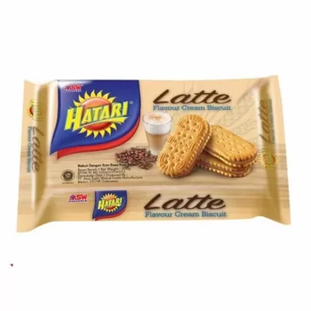 Hatari Latte Cream Biskuit [190gr] Merupakan Biskuit yang renyah dan gurih, terbuat dari bahan – bahan yang berkualitas dan di proses secara modern sehingga menghasilkan biskuit yang renyah,gurih, dan nikmat. Cocok untuk dijadikan cemilan sehari – hari dan diberbagai acara lainnya.