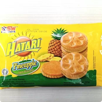 Hatari Pineapple Jam Biscuits adalah biskuit yang berisi selai kacang yang creamy dan lezat. Terbuat dari bahan pilihan berkualitas dan diolah secara modern menjadikan biskuit ini terjamin kualitasnya. Hatari Peanut Jam Biscuits sangat cocok dinikmati saat santai bersama keluarga dan teman bersama kopi atau susu panas.