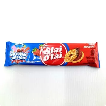 Slai Olai Strawberry adalah biskuit yang didalamnya diisi selai strawberry yang terbuat dari buah asli sehingga menghasilkan selai yang lembut dan manis, biskuit ini mengandung susu dan memiliki tekstur yang lembut serta rasa yang enak dan gurih.Slai Olai Strawberry cocok dikonsumsi ketika sedang santai dan dapat dinikmati bersama teh atau kopi.
