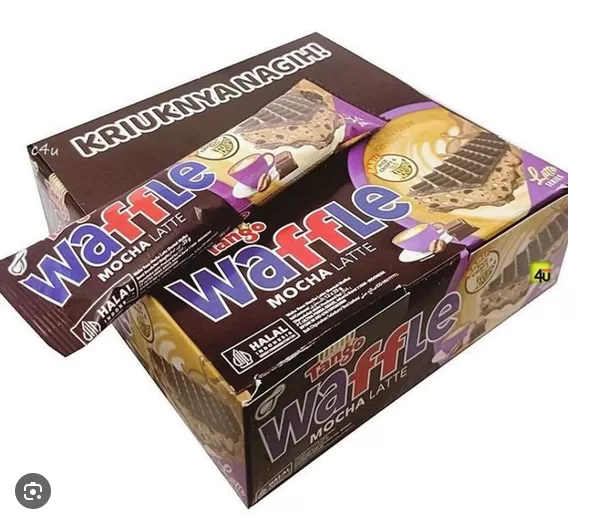 WAFER DENGAN ISI KRIM MOCHA LATTE YANG TEBAL, NIKMATNYA PERPADUAN ANTARA COKLAT DAN KOPI, RENYAHNYA RICE CRISPY,