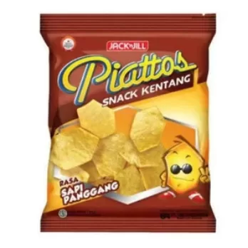 PIATTOS SAPI PANGGANG adalah keripik kentang berbentuk segi enam yang unik dengan tekstur yang tebal. Piattos dihasilkan dari kentang pilihan dan bumbu lezat yang akan menjadi kesukaanmu. Rasakan kerenyahan dalam setiap gigitan keripik kentang Piattos sapi panggang dan jadikan momenmu bersama teman-teman semakin seru dan rame.