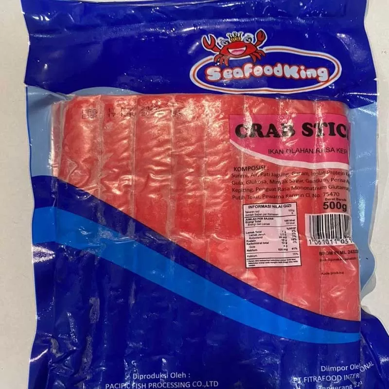 Crab Stick Seafood King, Produk Premium dijamin kualitas tingkat tinggi. Terbuat dari daging ikan laut dalam segar membuat tekstur kenyal dan tidak amis.