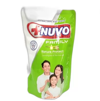 NUVO FAMILY Sabun Mandi Cair adalah sabun antibakterial dengan bahan aktif TCC dan Farnesol. Farnesol adalah bahan anti bakterial alami yang melawan kuman penyebab bau badan.